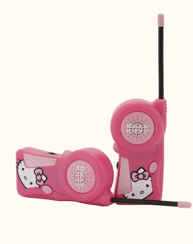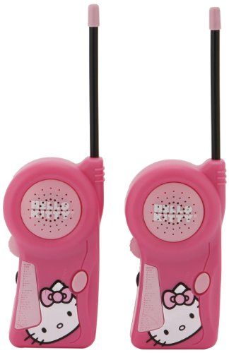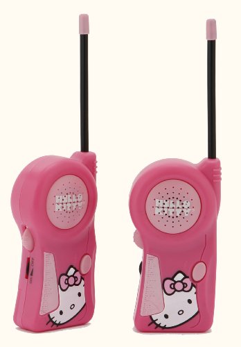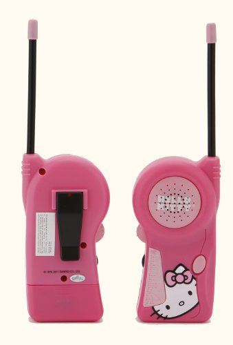 A Set of 2PCs Sanrio Hello Kitty Walkie Talkies with Morse Code Transmitter. Flexible Safety Antenna. On/Off Switch. Belt-Clip Included. Battery Requirement: Each uses 9V Battery (Not Included). With Morse Code Transmitter.