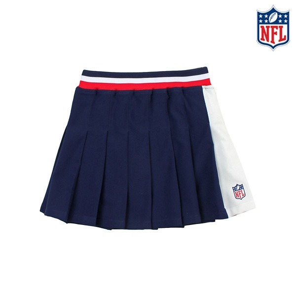 플리츠 스커트로 허리 스트라이프와 앞 NFL 엠블럼 나염으로 포인트를 준 아이템입니다.