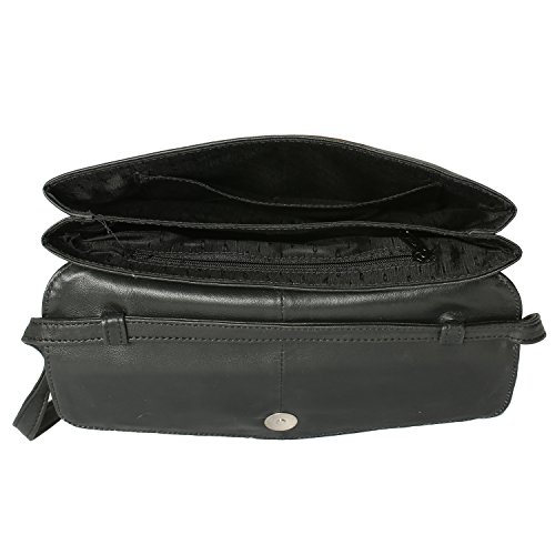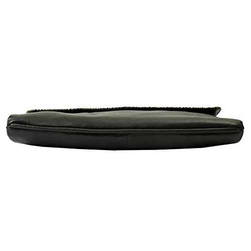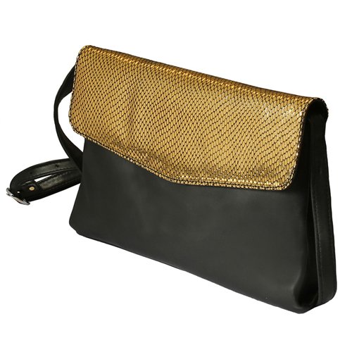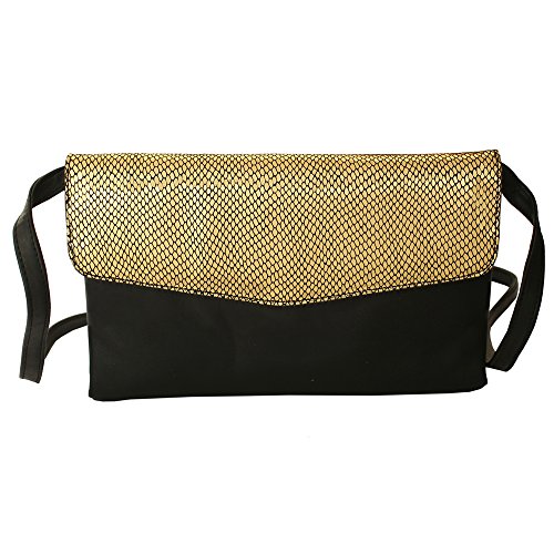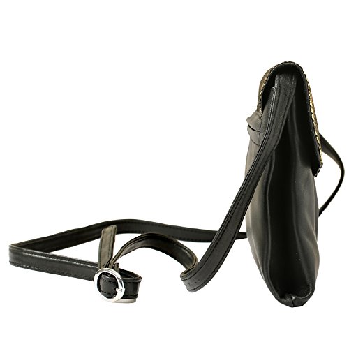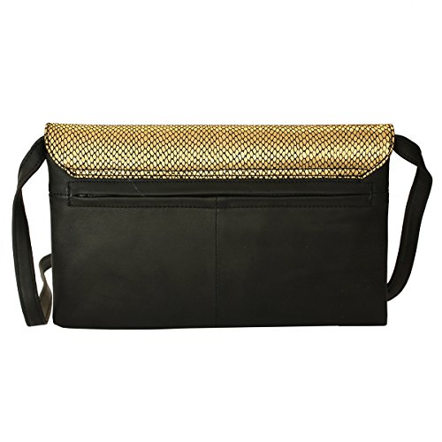 PRERNA Women's Genuine Leather Nappa Cross Body One Size Bag Black & Golden