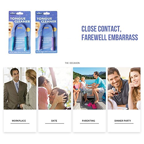 Studio : genkent Publisher : genkent Binding : Misc. Product Description #1 Tongue cleaner For you oral health Genkent® tongue cleaner is made from stainless steel and has comfortable grip handles for easier use and to get right to the back of the tongue. Stainless steel makes it easy to keep your tongue scraper clean and germ free Why do you choose Stainless Steel Tongue Cleaner Scraper 1. Stainless steel tongue scrapers can be easily sterilized with boiling water or antibacterial solutions, but they can be more expensive. Stainless steel tongue scrapers are relatively easy to keep germ free with the proper care 2. Genkent® tongue scraper's easy to remove food particles and bacteria 3. Genkent® tongue cleaner is adjust, A smaller scraper is suitable for older children and smaller tongues while a wider-angled scraper is ideal for adults 4. 5x more clean effective for tongue cleaning than a toothbrush and plastic craper. Cleaning the tongue does improve the taste within your mouth- the experts at the Journal of Clinical Periodontology say so! How to Use a Tongue Scraper 1. Open your mouth,Stick out your tongue 2. Pick up the scraper 3. Begin scraping: repeat 3 or 4 times, Use twice daily for best results 4. Rinse the scraper after each stroke: sterilized with boiling water or antibacterial solutions Color: Blue/Dark purple(Random) Brand:genkent weight:35 g volume: 18.5*9.2*1 Order Now! Click "Add To Cart" button above to place your order. Note: Color maybe vary