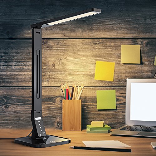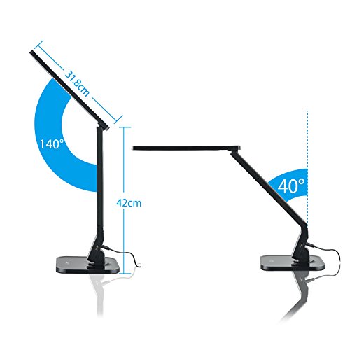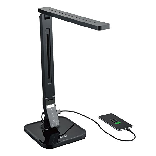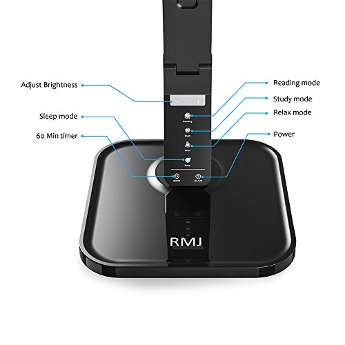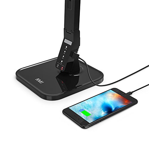 RMJ Dimmable LED Desk Lamp RMJ-1000A, 4 Working Mode with 5-Levels Dimmer, Touch Control, 1-Hour Auto-off Timer, 5V/1A USB Charging Port, Black