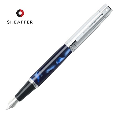 -. Title : Sheaffer Gift Collection (300) Fountain Pen, Chrome Cap, Glossy Blue Marble Barrel with Chrome Plate Trim (SH/9316-0)