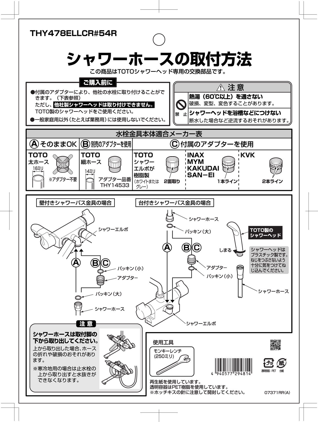 Shower hose (L = 1600mm with adapter) THY478ELLCR (japan import)