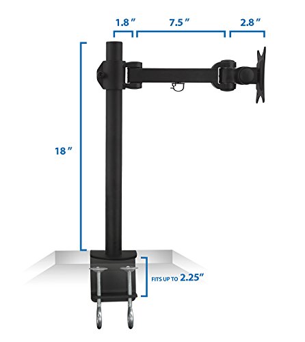 -. Binding : Office Product -. Brand : Mount-It! -. Color : Black -. Feature : Single arm can articulate in three different locations for best positioning for laptop/notebook up to 22 lb / Swivel and Rotate: 360 Degree with Full Motion Mount - Easily Tilts, Swivels arm / Lift your laptop to free your desktop space / Height adjustable up 10 1/8" with a laptop platform of 11 3/4" by 11 3/4". / Heavy duty "C" clamp integrated double lock ensures stable mounting onto the desk. -. Label : Mount-It! -. Manufacturer : Mount-It! -. Model : MI-3352LT -. MPN : MI-3352LT -. PackageQuantity : 1 -. PartNumber : MI-3352LT -. ProductGroup : Office Product -. ProductTypeName : OFFICE_PRODUCTS -. Publisher : Mount-It! -. Studio : Mount-It! -. Title : Mount-It! Single Laptop / Notebook Desk Mount / Stand with Fully Adjustable Extension Arms and Clamp