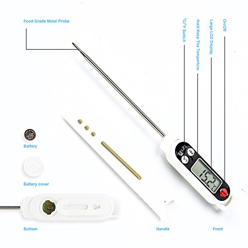 Studio : YITE Publisher : YITE Product Description ● This high quality meat thermometer can fast display of food temperature. After the temperature is stable, temperature numbers can be locked quickly. The most important one is meat thermometers are super fast speed ,fast stability and large screen display. The super figh speed meat thermometer is popular. A good meat thermometer for Chef, Housewife, Mommy ect. ? Product Feather: ? SAFATY PRODUCTS:The meat thermometer uses food level metal sensor probe. Mercury free,non toxic and lead free. The safe instant read food thermometer is absolute. Health protection for anyone. ? EASY TO READ: The meat thermometer has large screen digital display. The digital cooking thermometer have clear and stable digital display, that is convenient for anyone to read. ? SUPER HIGH MEASURE: The meat thermometer is equipped with a precision temperature sensing element. Kitchen BBQ thermometer can measure the temperature quickly. ? Lockable temperature:The meat thermometer can lock the temperature. When the instant read food thermometer's probe leaves the object ,The temperature will not change. ? Sheath protection :The sheathing is clean and sanitary. Prevent meat thermometer bacteria from breeding. ? Use safety:The meat thermometer has a variety of handheld methods. Especially when measuring high temperature. Protect you from steam scald. ? Warranty: 100% Money Back: We offer best service for every custom, if you are not satisfied with our product, Please contact us in time, we can offer 0 full refund. ▲▲▲▲▲▲▲▲ ● Notice: 1.Clean the meat thermometer and probe with a damp cloth before and after using. 2.Never use the meat thermometer in a closed oven. Don't touch the hot probe with your hand. 3.Temperature measuring range:-50°C~ 300°C(-58°F~ 572°C) ● Package Included: 1x meat thermometer with Sheath 1x 1.5V(LR44) Button Battery