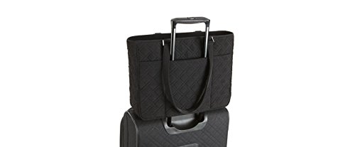 -. Brand : Vera Bradley -. ClothingSize : Large -. Color : Classic Black -. Department : womens -. EAN : 0886003321720 -. Feature : Recessed top zip closure; 2 handles with drop of approx 11.5 inches; Silver-toned hardware / Front has zip pocket with silver-toned Vera Bradley name plate / Back has 2 slip pockets and 1 trolley sleeve / Open interior includes a padded laptop compartment with velcro closure and three slip pockets / Approx. Dimensions: 16 in L x 12.5 in H x 5 in W -. ProductGroup : Shoes -. ProductTypeName : HANDBAG -. Size : One Size -. Title : Vera Bradley Work Tote Handbag Satchel in Classic Black -. UPC : 886003321720