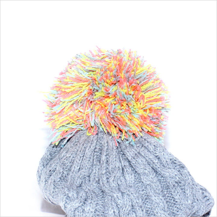 カラフルで大きなボンボンと、細字の大きなロゴ刺しゅうがインパクトあるビーニーです。明るい発色の良いカラーをチョイスしてパンチのあるデザインに仕上げました。裏地にフリース素材を使用しておりかぶり心地も快適です。リズムカルに配列したケーブル刺しゅうが更にかわいい雰囲気を演出。コーディネートの主役にぴったりのアイテムです。