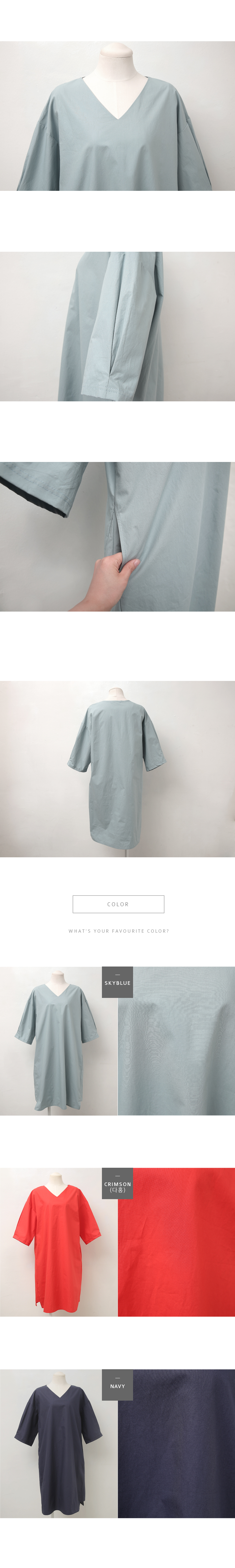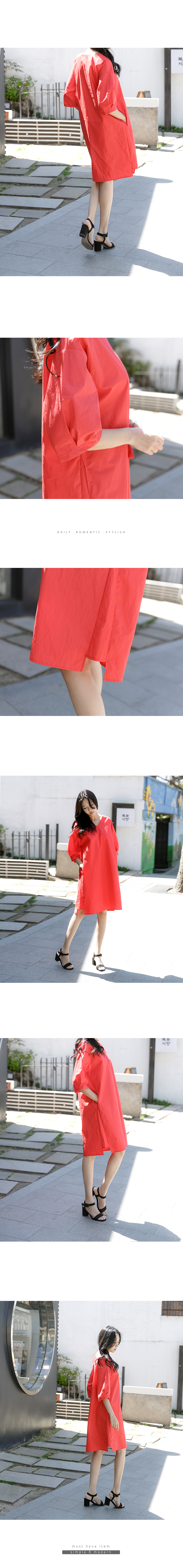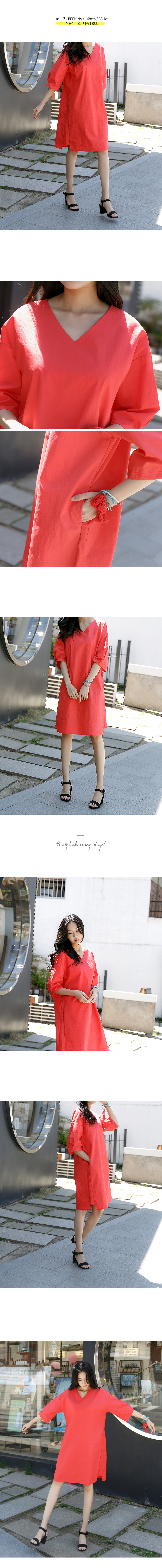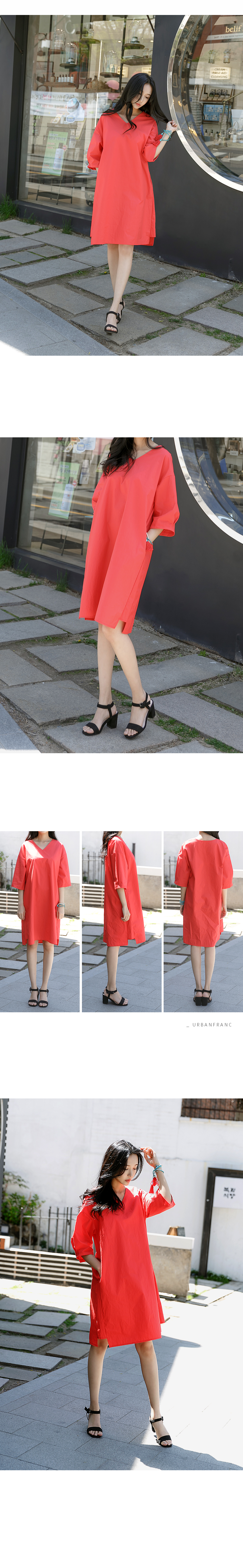 상큼한 컬러의 브이넥 5부소매 코튼 원피스
