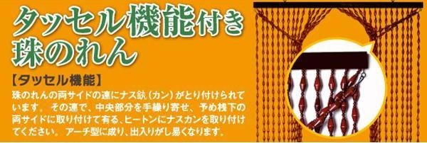 玄関や部屋の仕切りなどに便利なのれん。タッセルが付いているので両側に分けて、固定することが可能です。「算盤の街」として知られる兵庫県小野市が生んだ和洋併用の空間インテリア商品です。温もりのある、手造り珠のれんを是非とも、ご愛用下さい。 |