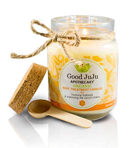 Good JuJu Apothecary 7 oz. Organic Therapeutic Massage Candle for Hormone Balance, PMS & Balancing the Sacral Chakra