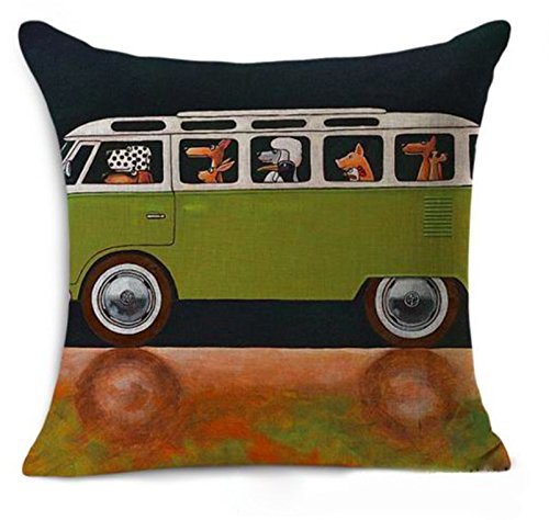 Petite Lili-Cushion Cover- Dog driver pillow Cover-Decorative Pillow-Bed/Kids/sofa 18 x 18 inch, (GREEN VOLKSWAGEN)