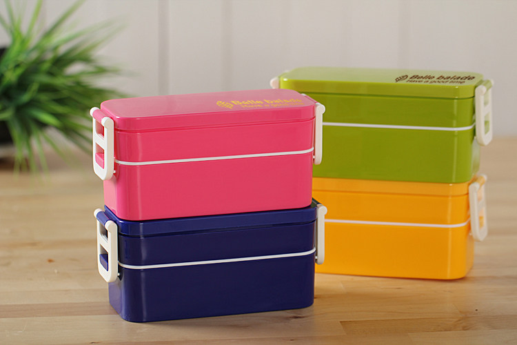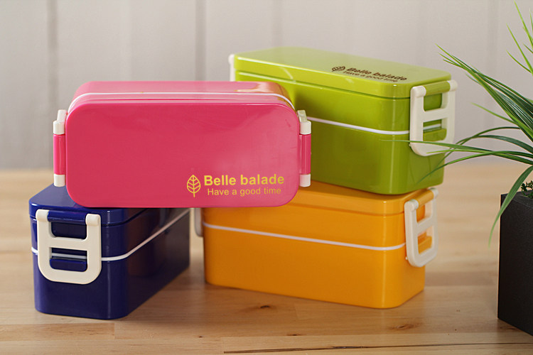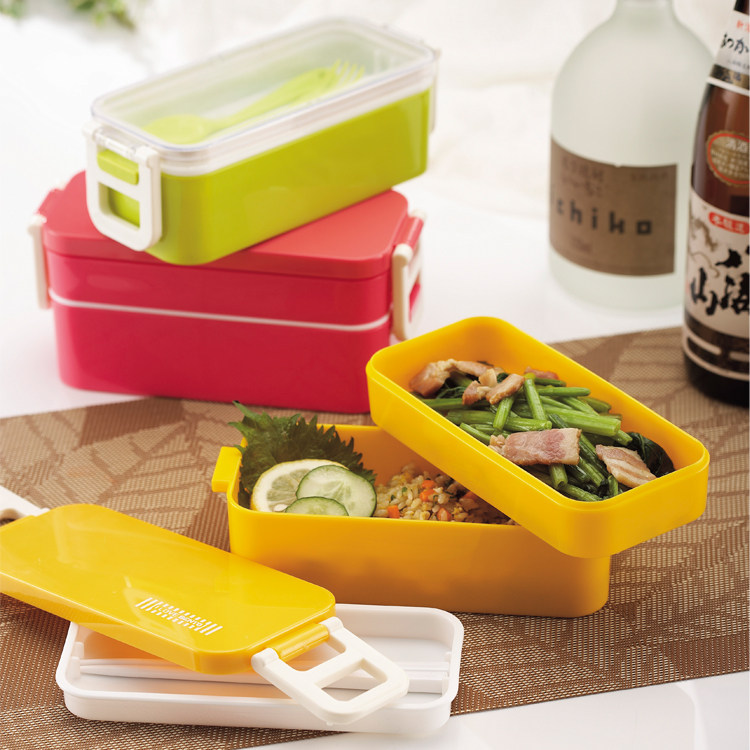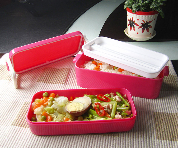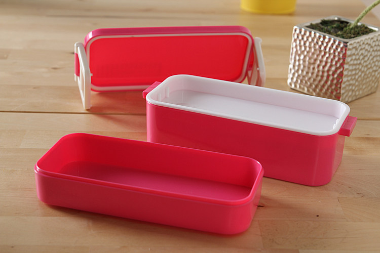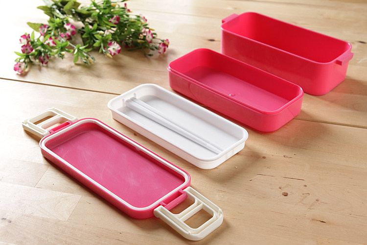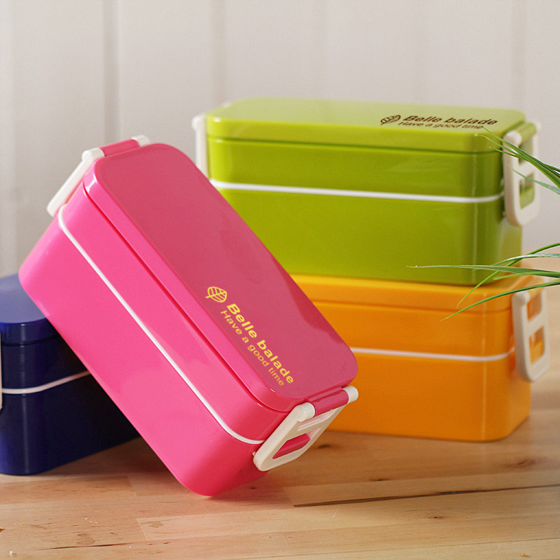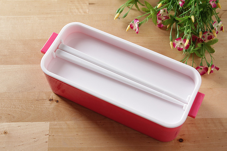 出口韩国 可爱双层便当盒 女士饭盒餐盒 饭团寿司盒配筷 可微波