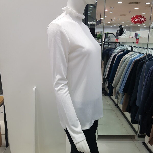 목에 살짝 프릴이 있는 기본티셔츠입니다