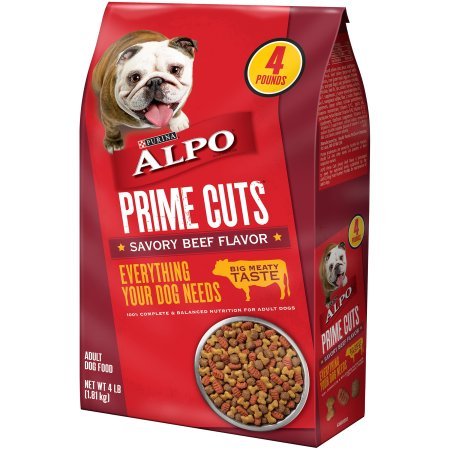 -. Binding : Misc. -. Brand : Purina ALPO Brand Dog Food -. EAN : 0607963714595 -. Feature : Big Meaty TasteEverything Your Dog Needs100% Complete / Balanced Nutrition for Adult DogsWith high-quality protein and 23 vitamins and minerals including calcium to help support strong bones and linoleic acid to help support healthy skin and coat -. Label : Purina ALPO -. LegalDisclaimer : Actual product packaging and materials may contain more and different information than what is shown on our website. We recommend that you do not rely solely on the information presented and that you always read labels, warnings, and directions before using or consuming a product. -. Manufacturer : Purina ALPO -. MPN : 1113214548 -. PackageQuantity : 10 -. PartNumber : 1113214548 -. ProductGroup : Pet Products -. ProductTypeName : PET_SUPPLIES -. Publisher : Purina ALPO -. Studio : Purina ALPO -. Title : PACK OF 10 - Purina ALPO P.R.Ime Cuts Savory Beef Flavor Dog Food 4 lb. Bag -. UPC : 607963714595