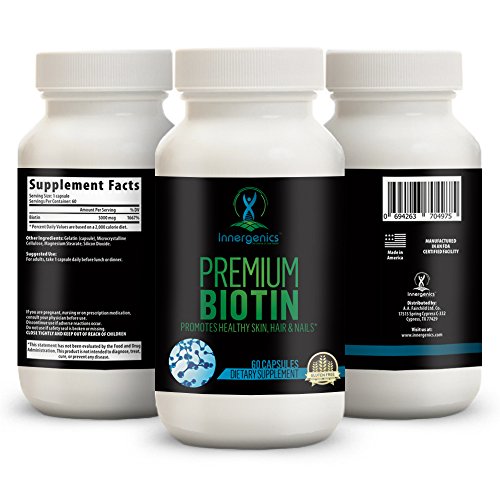 -. Title : Innergenics Premium Biotin 5000 mg - Hair, Skin & Nails Supplement - Supports Hair Growth, Strong Nails, Youthful Skin - Boosts Energy & Weight Loss - Vegan, Gluten-Free - USA Made - 60 Capsules*