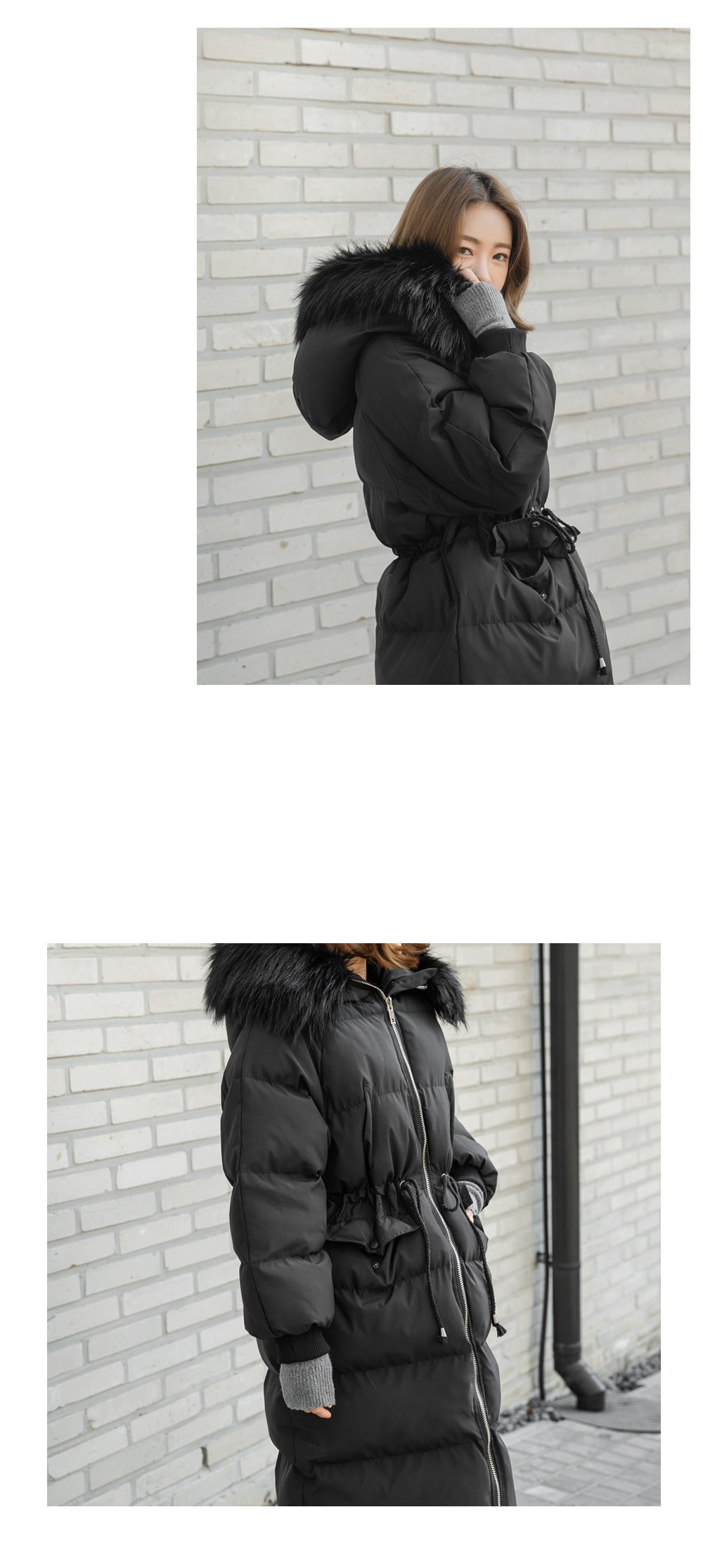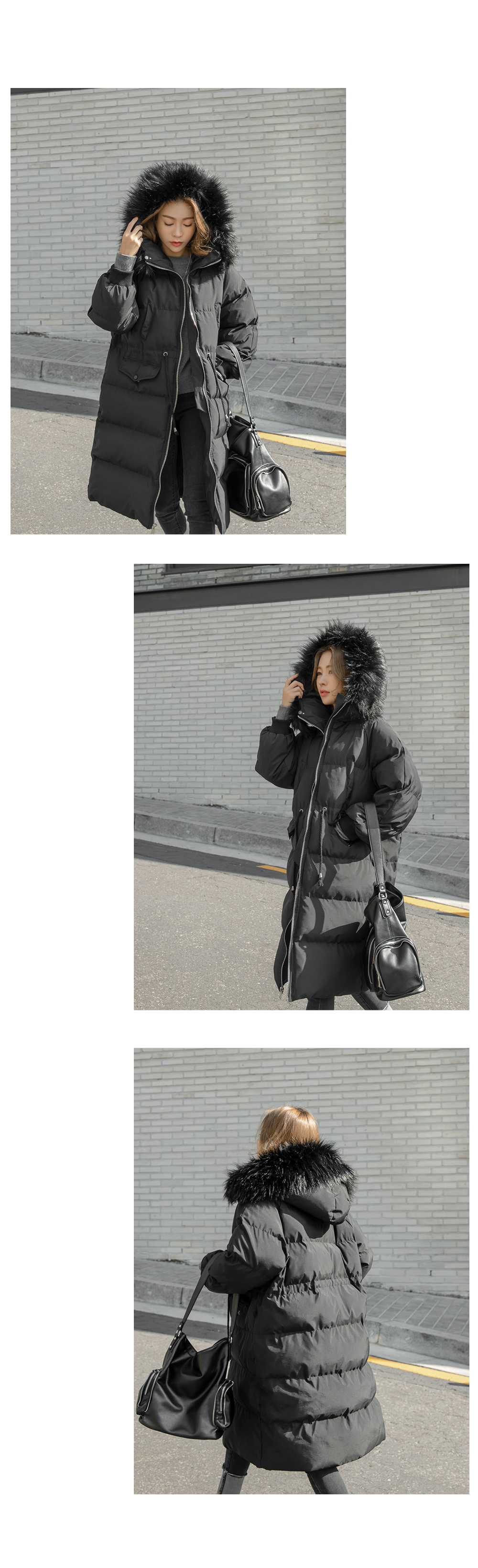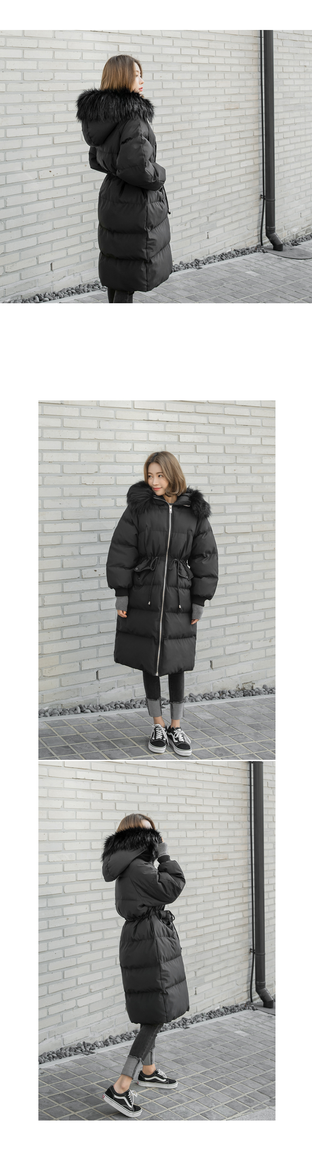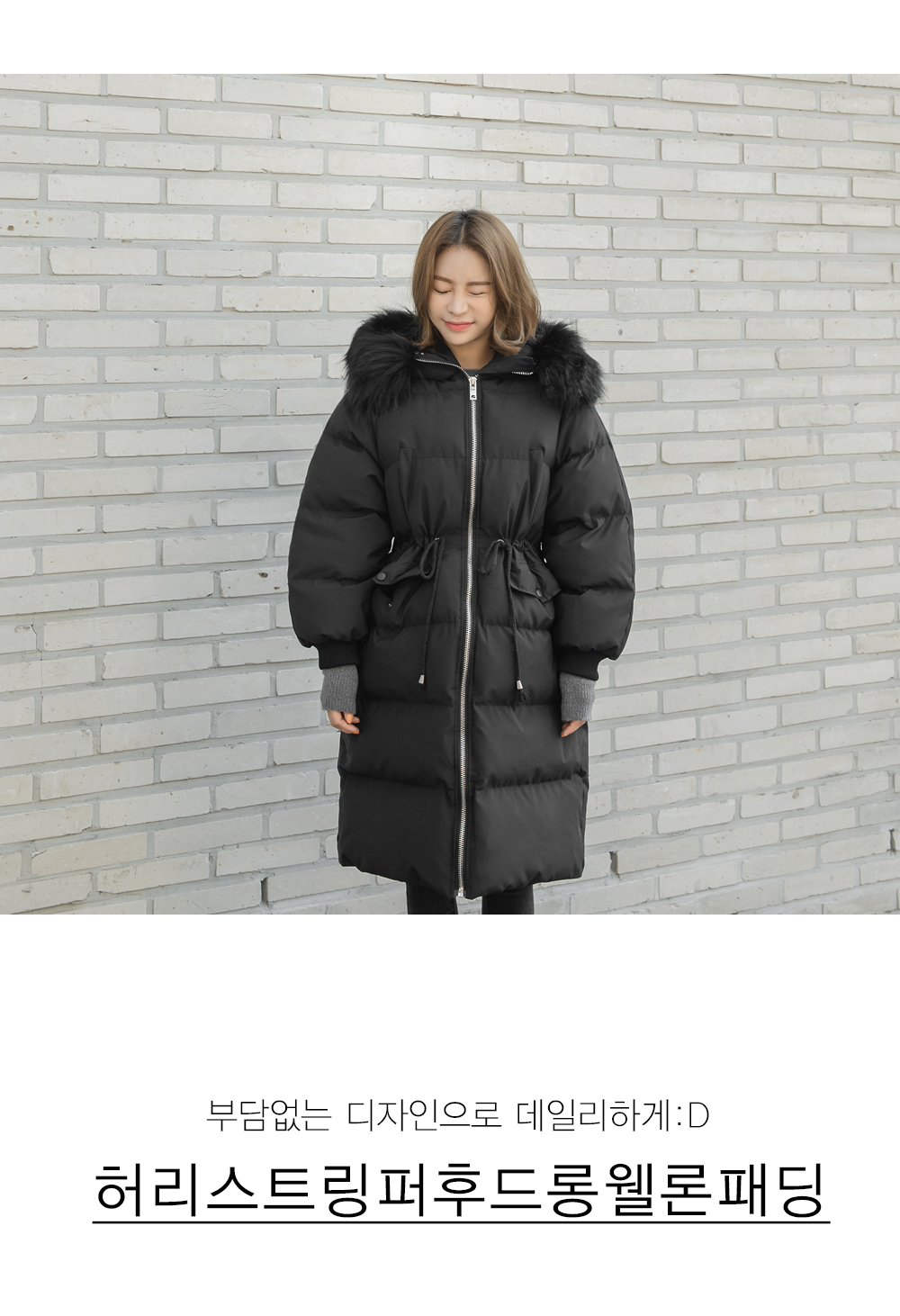 '허리스트링 퍼 후드 롱패딩!'