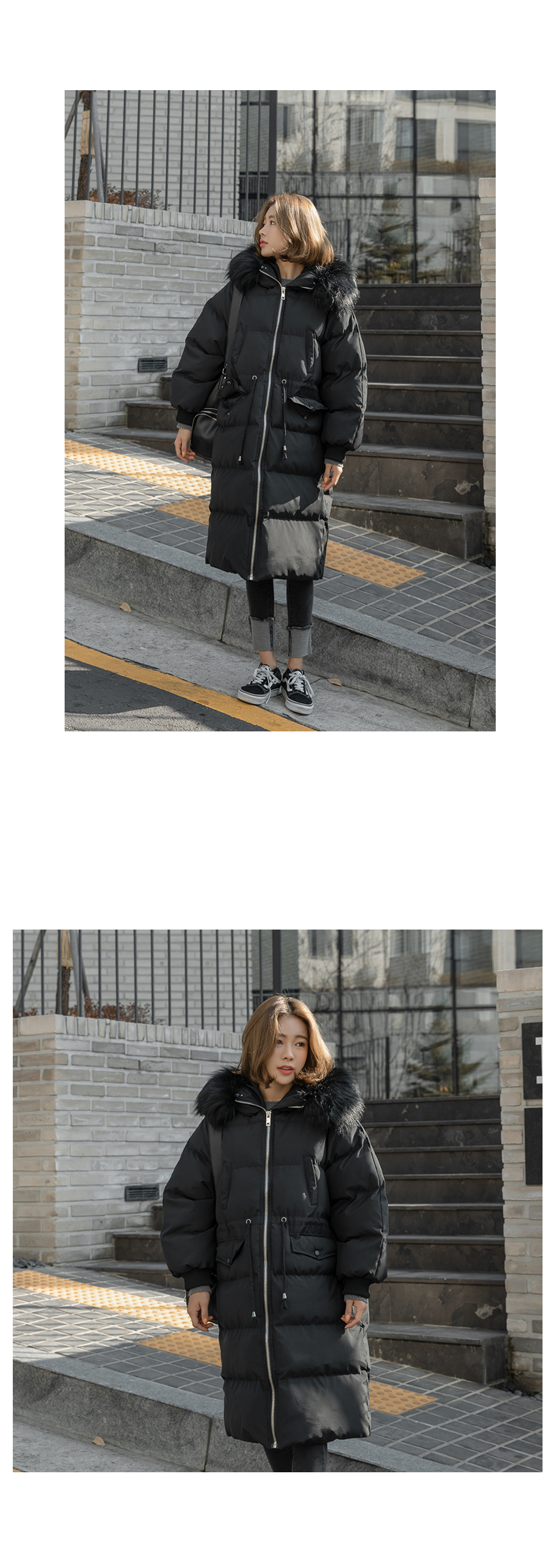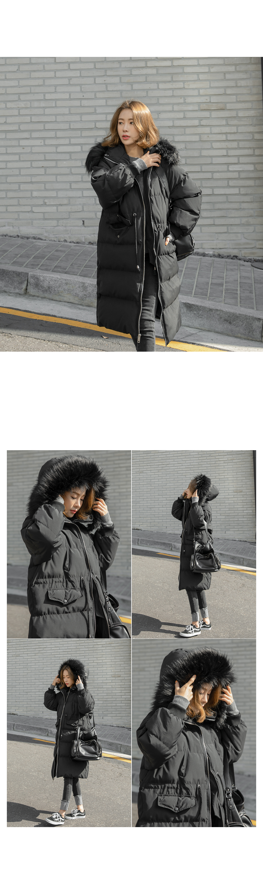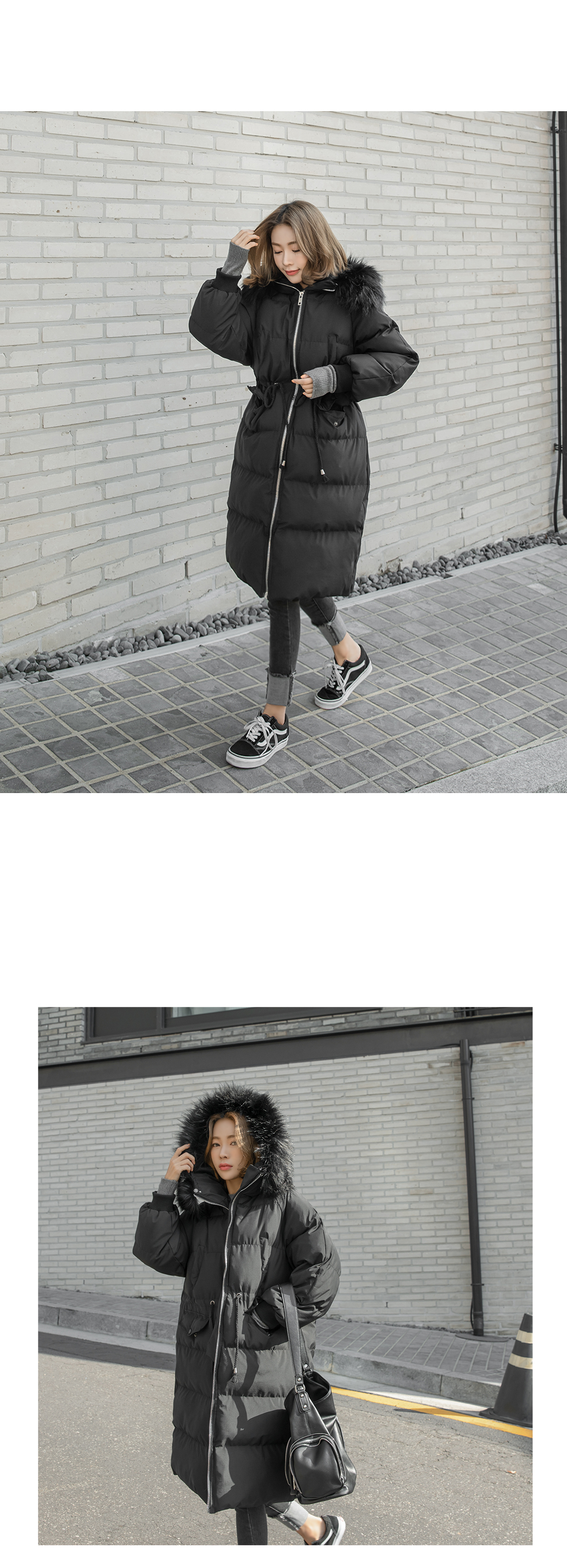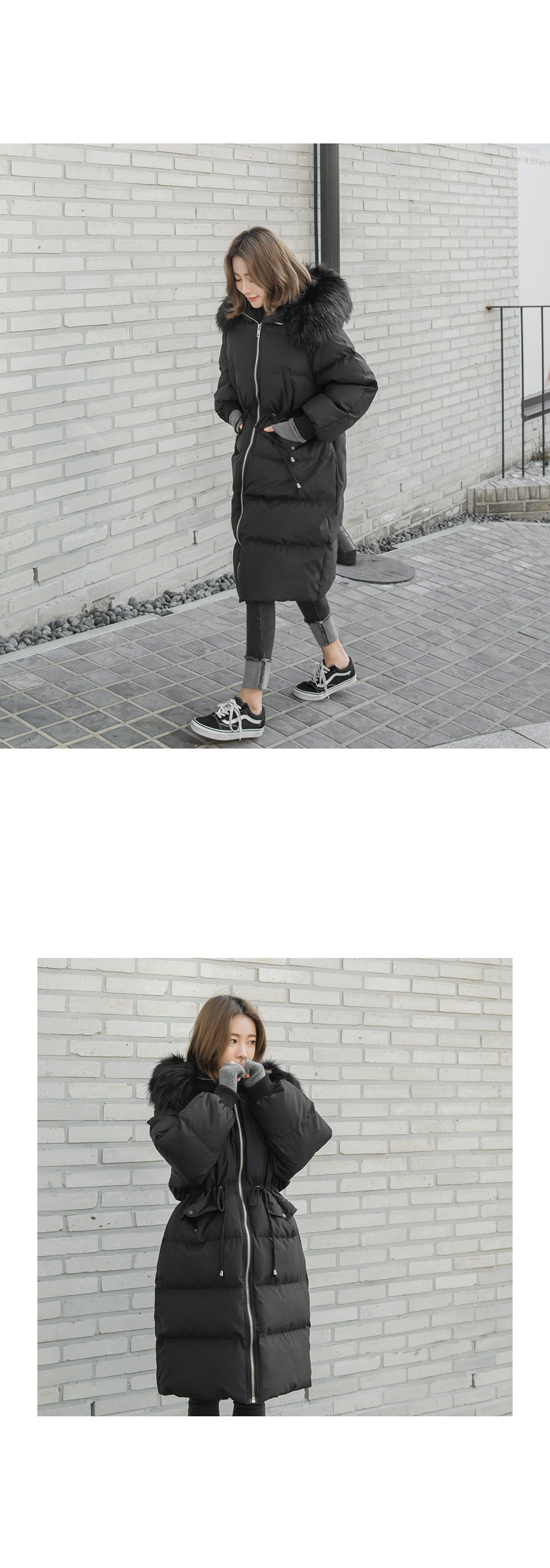 '허리스트링 퍼 후드 롱패딩!'