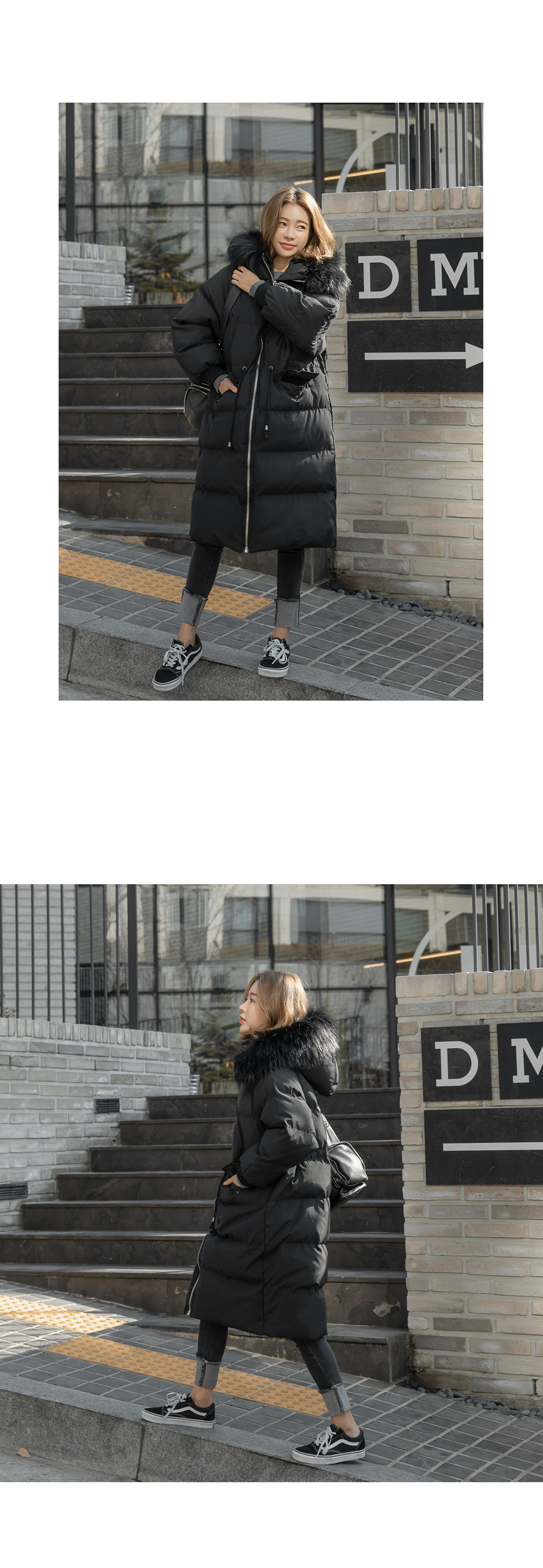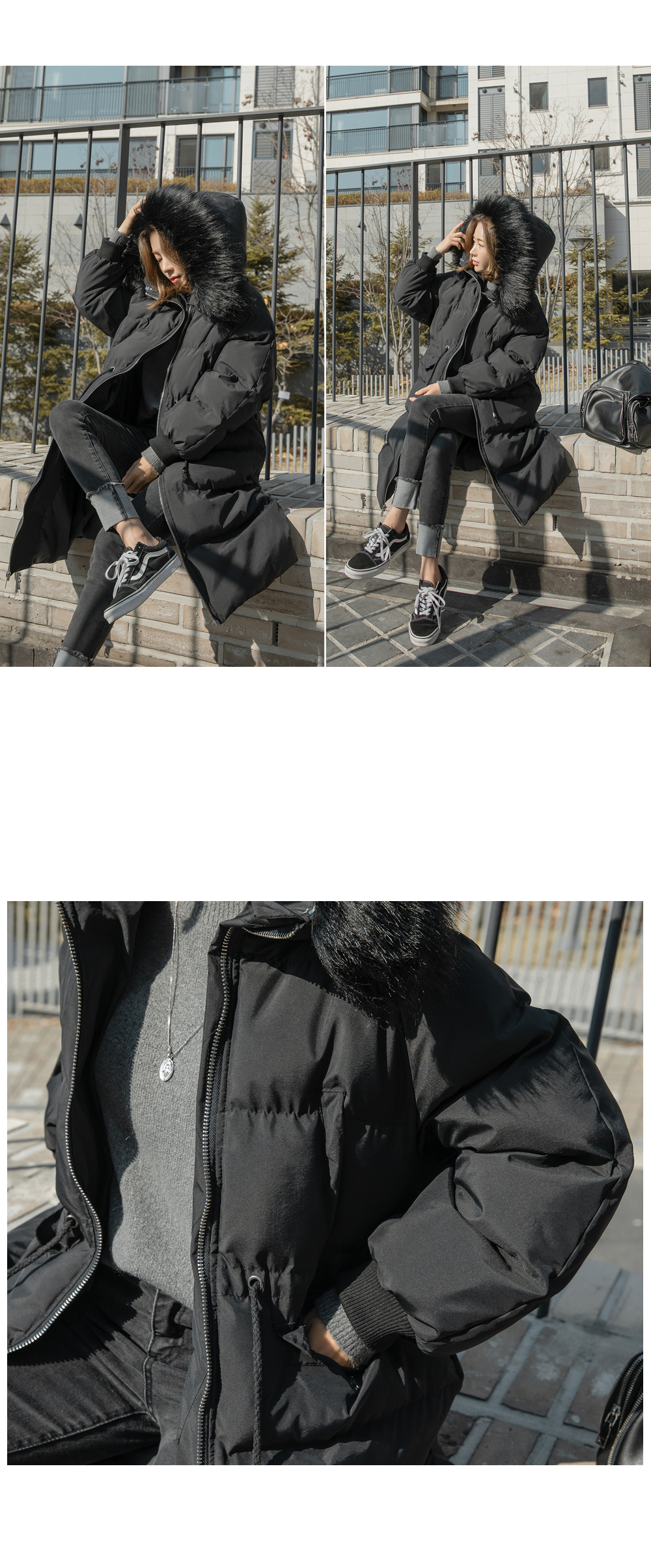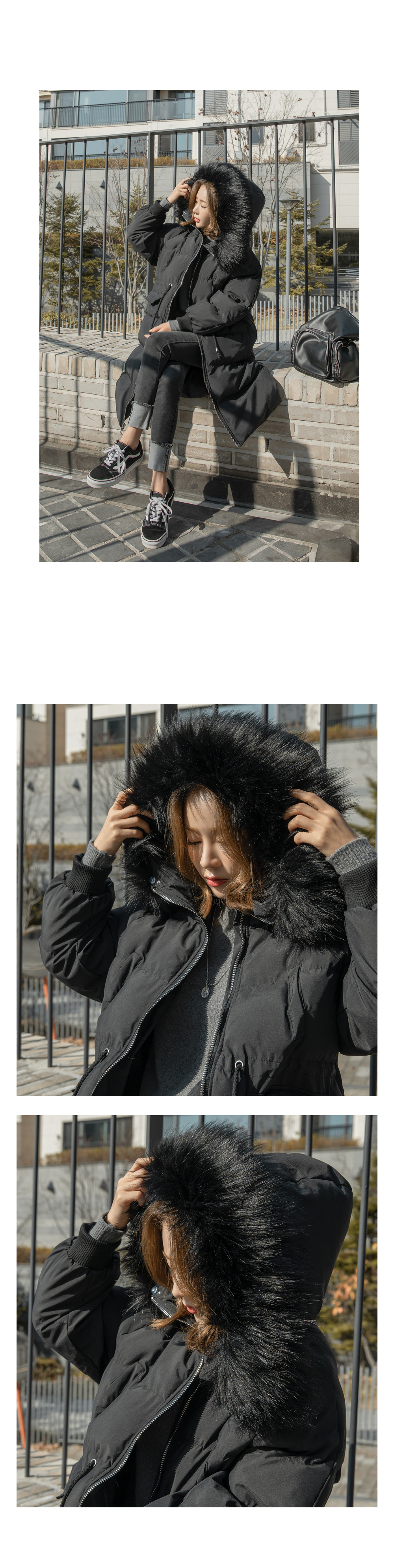 후드라인에 탈부착 가능한 퍼가 더해져 포인트가 되어준답니다!
