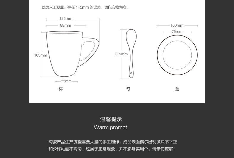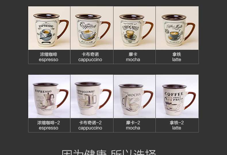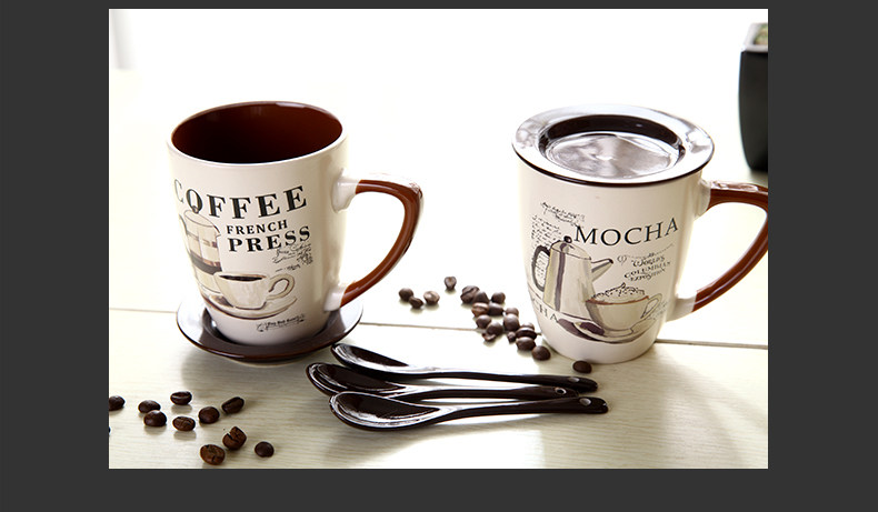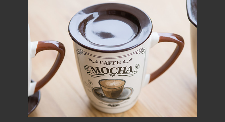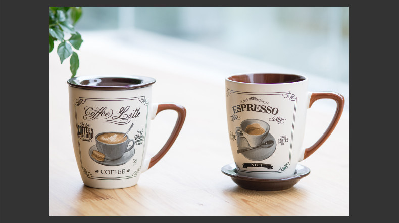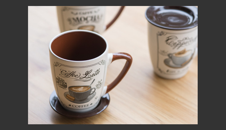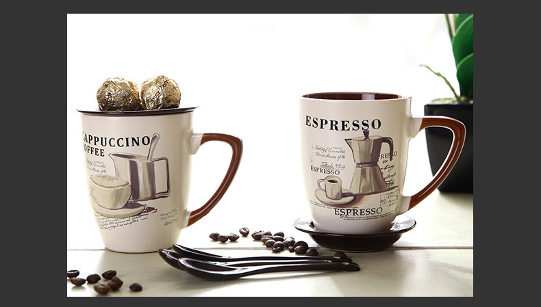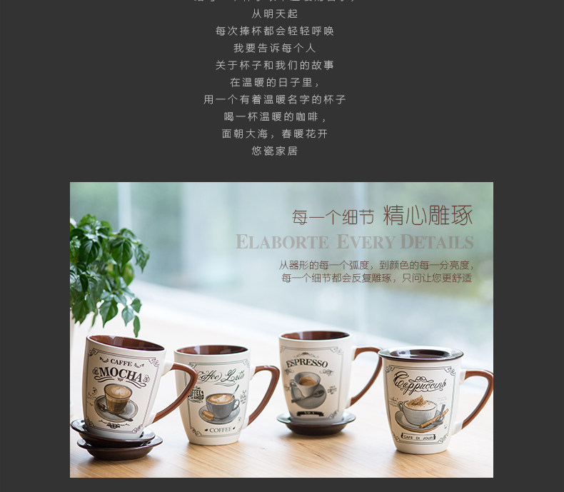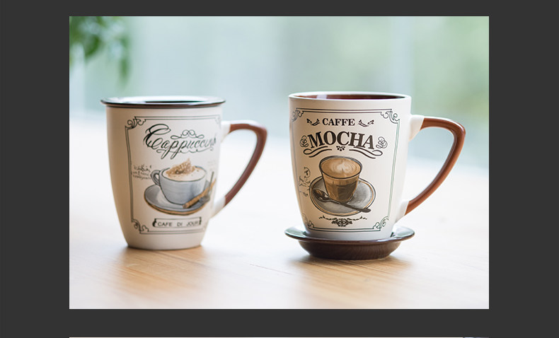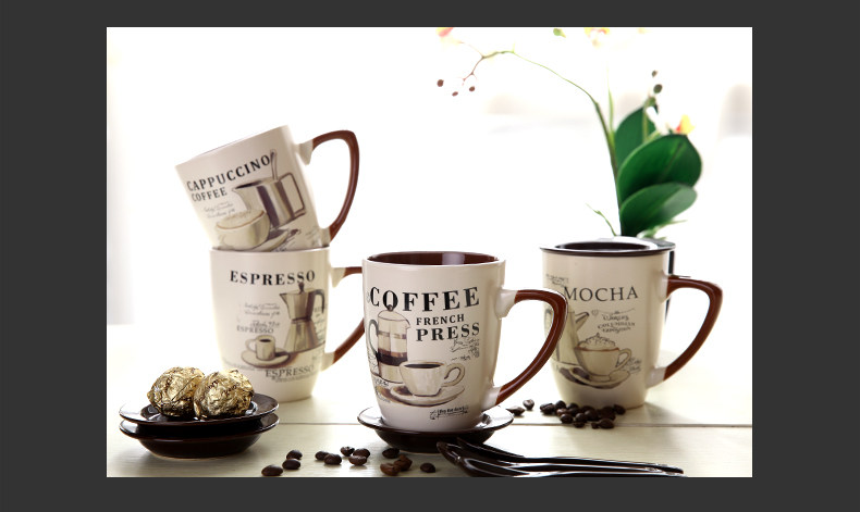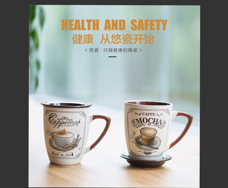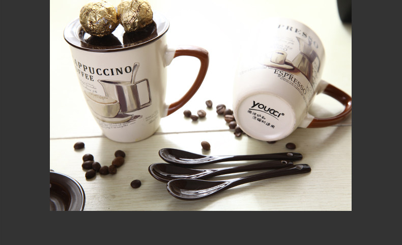 欧式简约大咖啡杯套装带盖带勺 创意水杯陶瓷杯子个性马克杯