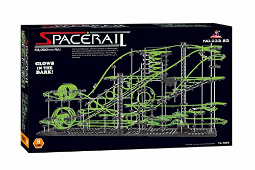 Studio : Spacerails Publisher : Spacerails Binding : Toy Product Description All the fun of SpaceRail now glows in the dark! Featuring a tapering vertical corkscrew, a seesaw drop, and consecutive loops, the glowing rails send this intermediate level set out of this world! Perfect for physics classrooms, expert Lego builders, and anyone that loves a challenge in thinking and building. This Glow In The Dark Intermediate Level Spacerail is a build it yourself Marble Rollercoaster. Build your Space Rail with the pre written instructions, or design your own! With endless possibilities and hours of fun, this Marble Rollercoaster will spark the minds of young children and even matured adults. Create fun filled family memories, and build a Spacerail together. 0