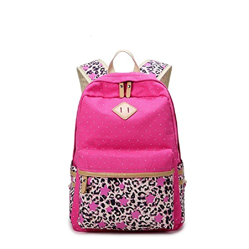 -. Title : Generic Canvas Polka Dots Leopard Pattern Personality Backpack (Rose)