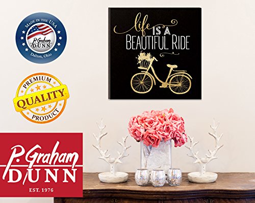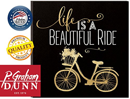 Life Is A Beautiful Ride Gold Bicycle 11.75 x 11.75 Wall Mounted Glitter Plaque