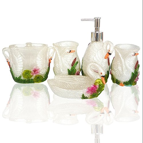 -. Title : Vintage Style Swan Design 5 Pieces Resin Bathroom Accessory Set Includes Soap Dispenser, Toothbrush Holder, Tumbler & Soap Dish