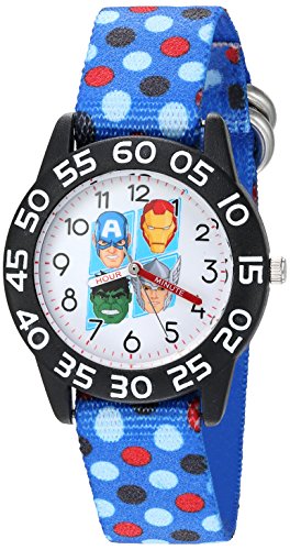 -. Binding : Watch -. Brand : Marvel -. Color : Blue -. Department : boys -. EAN : 0843231098183 -. Feature : Meets or exceeds all US Government requirements and regulations for Kid's watches / 1 year limited manufacturer's warranty / Analog-quartz Movement / Case Diameter: 32mm / Water Resistant To 30m (100ft): In General, Withstands Splashes or Brief Immersion In Water, but not Suitable for Swimming or Bathing -. Label : Marvel-Roll Up -. Manufacturer : Marvel-Roll Up -. Model : W003240 -. MPN : W003240 -. PackageQuantity : 1 -. PartNumber : W003240 -. ProductGroup : Watch -. ProductTypeName : WATCH -. Publisher : Marvel-Roll Up -. Studio : Marvel-Roll Up -. Title : Marvel Boy's 'Captain America' Quartz Plastic and Nylon Watch, Color:Blue (Model: W003240) -. UPC : 843231098183