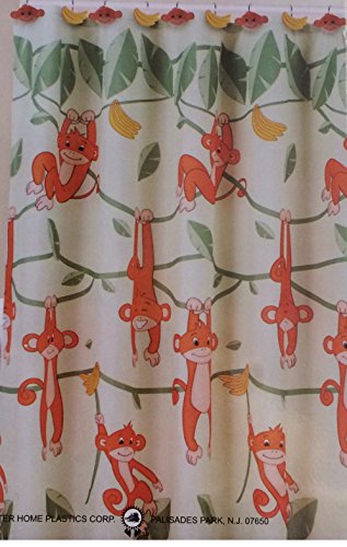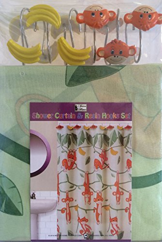 -. Feature : Monkey & Banana design / Includes: Fabric Shower Curtain, 12 resin shower hooks / Gift packed / Size: 70" wide x 72" long / 100% Polyester shower curtain
