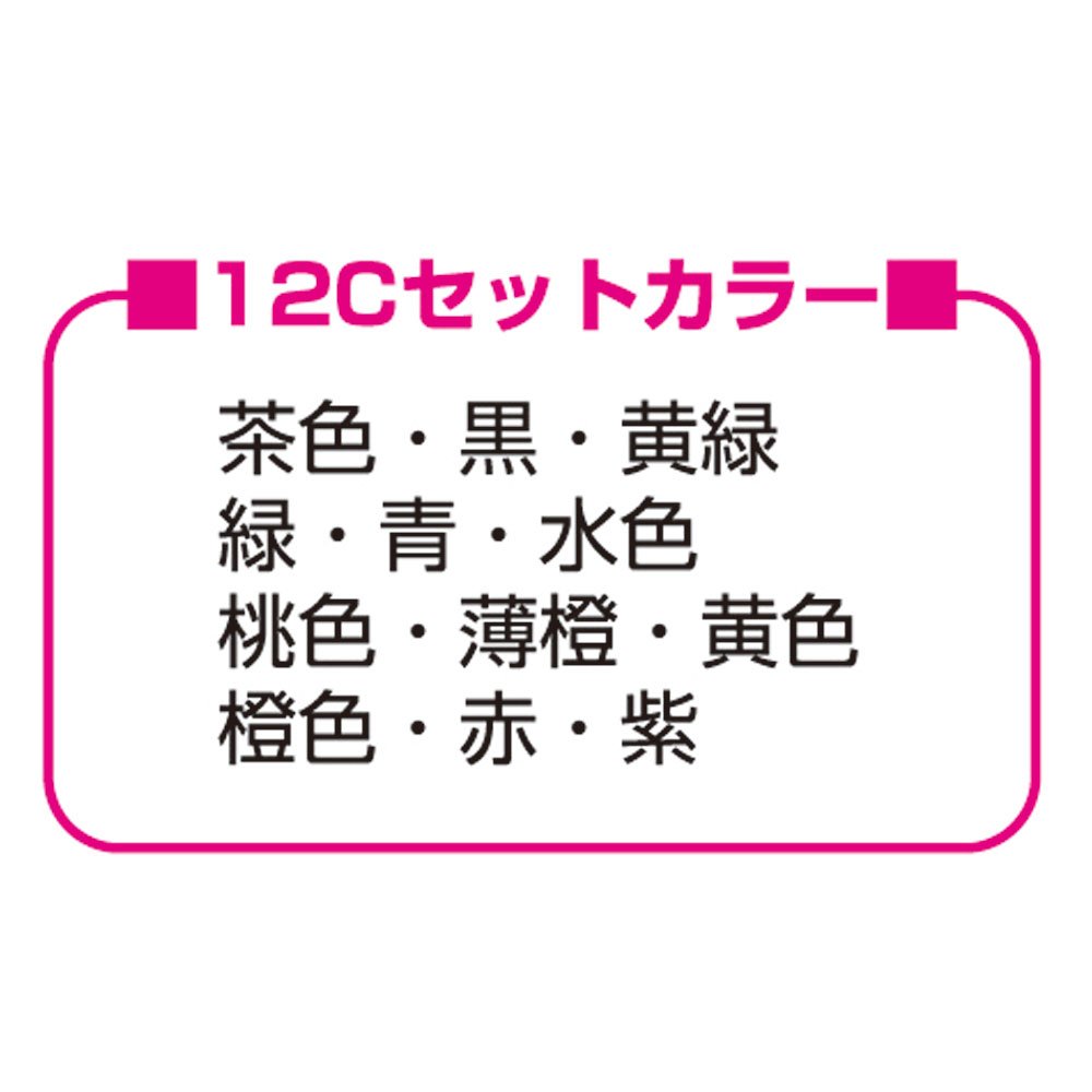 [12 colors] Brown, black, yellow green, green, blue, light blue, pink, light orange, yellow, orange, red, purple