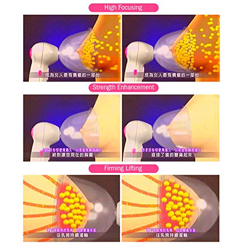 -. Feature : VACUUM ADSORPTION P.R.INCIPLE: Through the regular use of the machine to stimulate and enhance the blood circulation of the breast, as a result keeping the elasticity and uP.R.Ightness of the breast,helps breast focus movement, so as to admirably improve women's breast enhancement / SAFE: made of non-toxic ABS and silicone material,physical breast enhancement, more assured to use,the all-round net type cover as an accessories that can directly contact with the breast / HEATING FUNCTION: effectively activated breast acupuncture points, increase the rate of free fat locking hoarding,helpful on the activation breast cell vitality, toxins detoxification in addition to promote metabolism, improve micro-circulation, prevention of mammary gland hyperplasia, pain etc / RECHARGEABLE DESIGN: no worry of low battery,with the push of a button, the powerful motor creates a gentle suction action, making your breasts quickly swell in size as your nipples perk with pleasure / SUITABLE FOR: all type skin, ideal for those who has dysplasia breast, flat breast, sagging breast caused by breast feeding, deformed breast etc