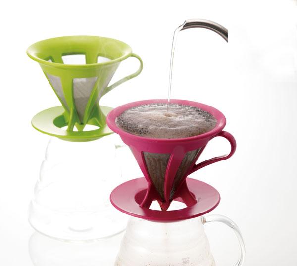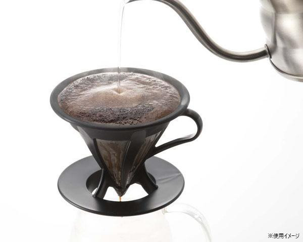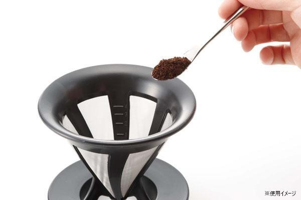 | メッシュフィルター付きでドリッパーペーパーを使わずそのままドリップできます!コーヒーのうまみ成分であるコーヒーオイルを抽出できる円すい形型ステンレスメッシュフィルター採用! |