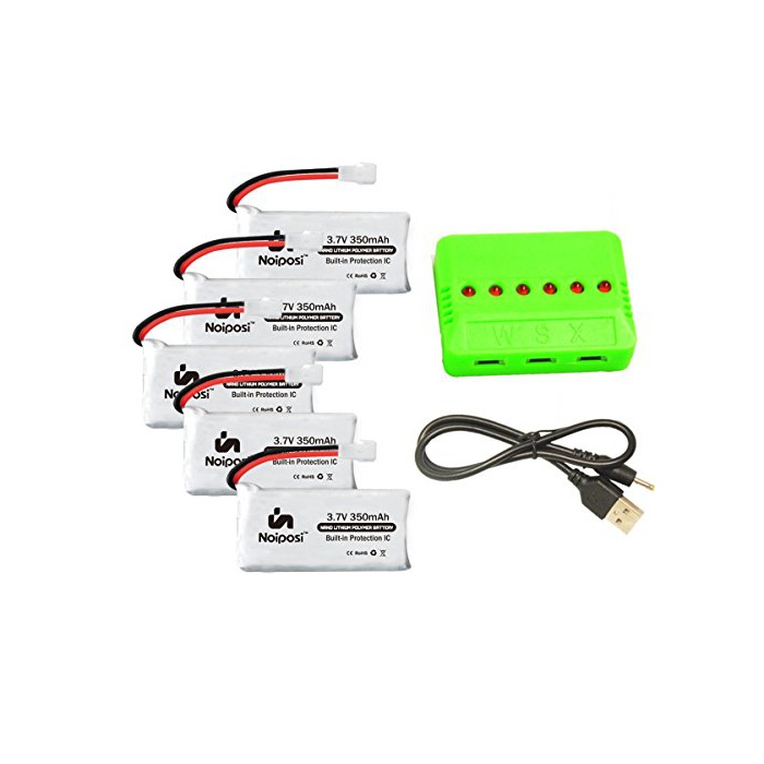 원본상품명: Noiposi 5pcs 3.7V 350mAh バッテリ? と 6点マルチ充電器 適用機種:Hubsan X4 H107d V939 F180C HS170