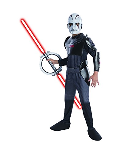 -. Binding : Toy -. Brand : Rubie's -. ClothingSize : One Size -. Color : multi-colored -. Department : unisex-child -. Feature : Inspired by the Disney cartoon Star Wars Rebels and licensed by Lucas films Animation Studios / Best fit for children 52 to 60-inches tall / Lightsaber, blasters, wigs and more: Rubies has all the Star Wars costume merchandise you love / Rubies' Costume Co, a world leader in costumes and accessories for the entire family since 1950 -. Label : Rubies - Domestic -. Manufacturer : Rubies - Domestic -. Model : 884897_L-Parent -. MPN : R884897 -. PackageQuantity : 1 -. PartNumber : R884897 -. ProductGroup : Toy -. ProductTypeName : CHILDRENS_COSTUME -. Publisher : Rubies - Domestic -. ReleaseDate : 2014-08-01 -. Size : One Size -. Studio : Rubies - Domestic -. Title : Rubies Star Wars Rebels Deluxe Sith Inquisitor Costume -. Warranty : No Warranty