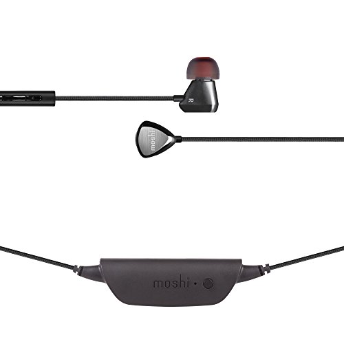 -. Feature : Advanced Bluetooth wireless design with 8 hours of playtime. / RigidBodyTM steel alloy construction delivers deep, clean bass. / DJ4twoTM: share music wirelessly to a second Moshi headset. / High-definition HR8 Neodymium drivers with extended range. / Integrated microphone with 3-button remote. Magnetic clip included.