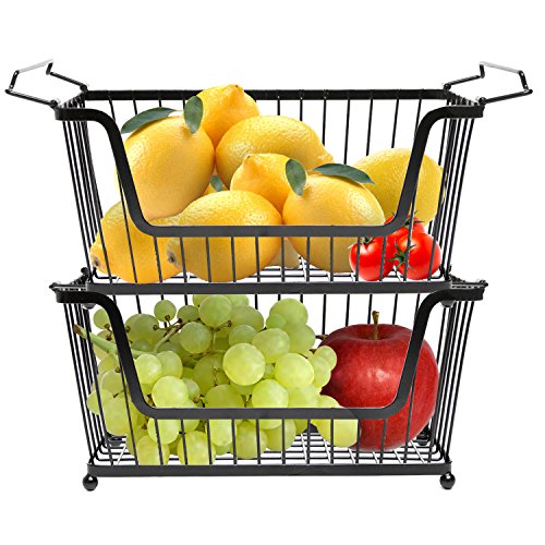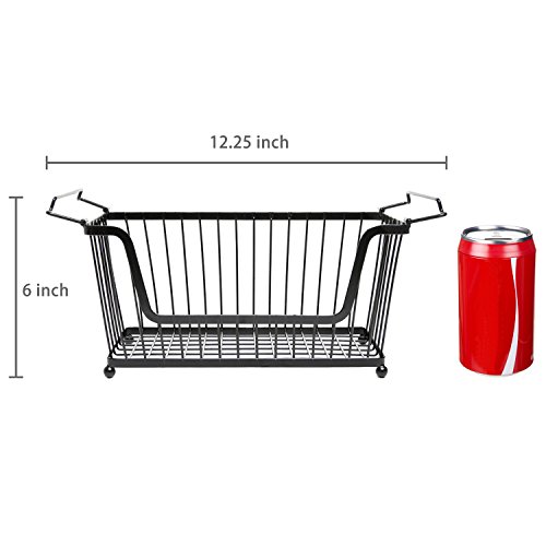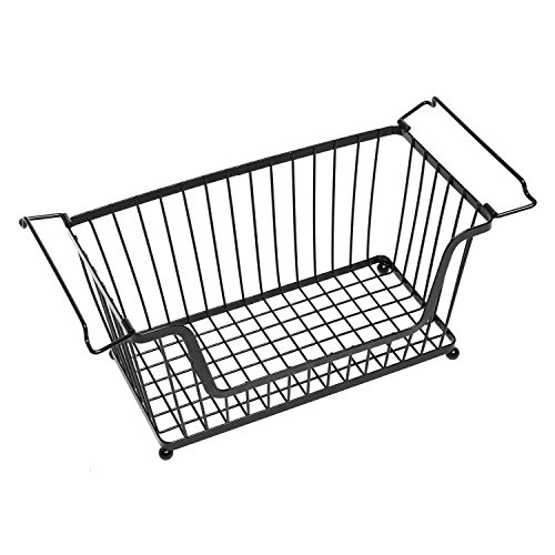 Stackable Black Metal Pantry Organizer Basket - Space Saving Home and Kitchen Storage Bin Solution