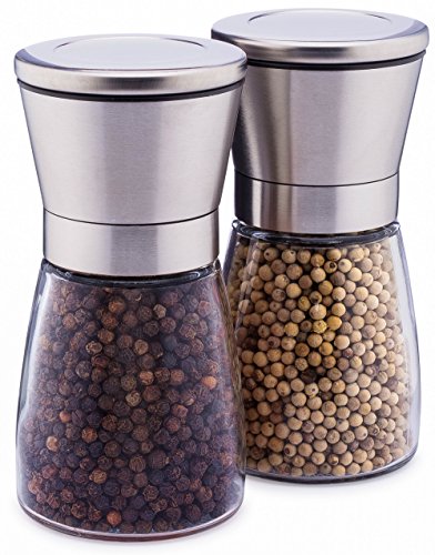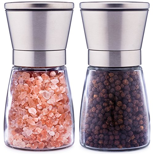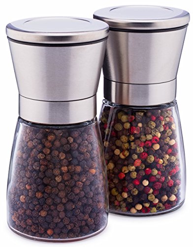 EASY TO USE – Just a few twists of these salt and pepper grinders and your meal is seasoned to perfection. To refill, just unscrew the grinder cap from the glass body, clean, and fill with your favorite spices.