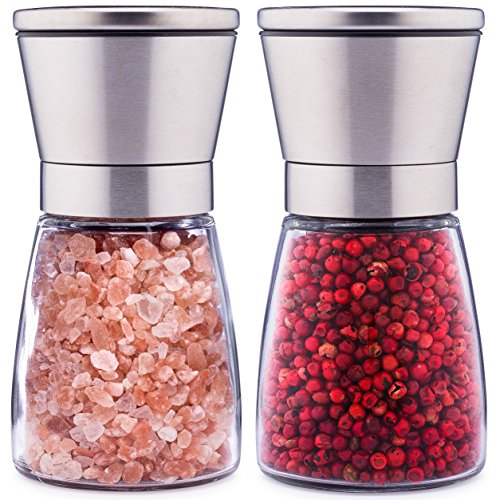 ELEGANT STYLE - Whether you want a pink Himalayan salt grinder or a simple black pepper grinder, you want a salt and pepper grinder set that looks elegant on your table. These stainless steel salt and pepper mills deliver on style, and, because they’re refillable, you’ll never be searching for the perfect set again.