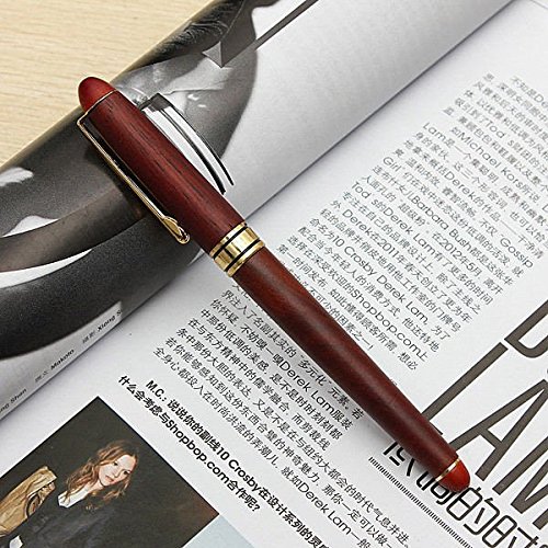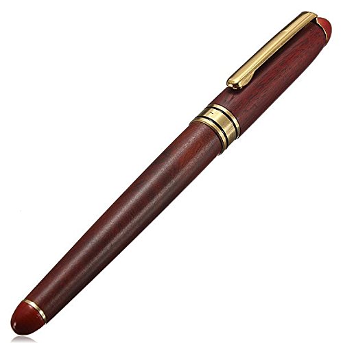 -. Title : BinaryABC Red wood Golden Trim M Nib Fountain Pen