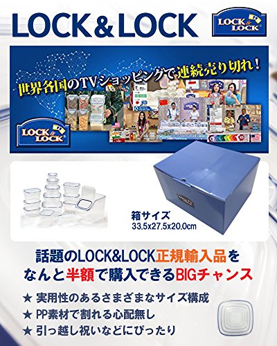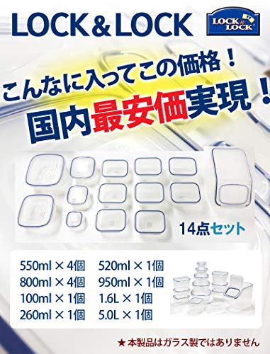 ★使わない時もきれいに収納できるセット! ★技術の新革命!4面ロック方式の密閉保存容器★ ロック&ロックは、密閉容器市場を一変させた画期的な密閉容器です。フタを4面でロックすることにより完全な密閉を目指しました。 ★電子レンジOK (あたため、解凍) ★冷凍OK ★食器洗い機OK ★[セット内容] 550ml×4個、800ml×4個、100ml×1個、260ml×1個、520ml×1個、950ml×1個、1.6L×1個、5.0L×1個 ★ 耐熱温度110℃ ★耐冷温度-20℃★本製品はガラス製ではありません