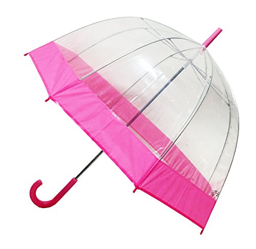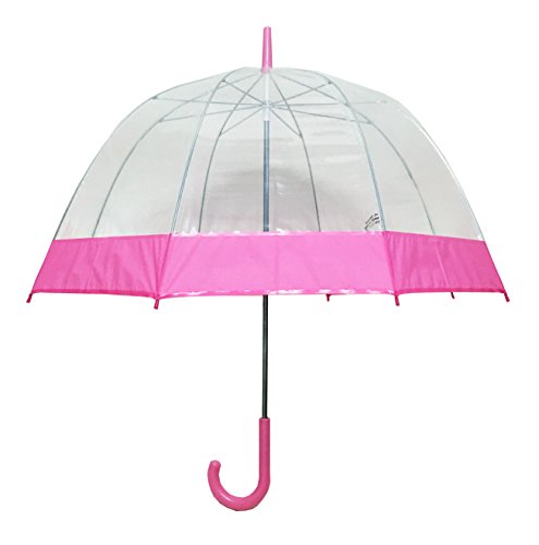 -. Brand : Elite America -. Color : pink transparent -. EAN : 0679981125677 -. Feature : Clear transparent fabric allow you to see through the umbrella when you walk / Dome shape which can cover you from head to shoulder / opens to 44", but due to it's dome shape, so it closes at the end, which measures 34" from one size to the other size / Fashion -. Model : 1256 pink -. PackageQuantity : 1 -. ProductGroup : Apparel -. ProductTypeName : LAGE -. Title : Pink Trim Clear Bubble Umbrella, Transparent Umbrella, -. UPC : 679981125677