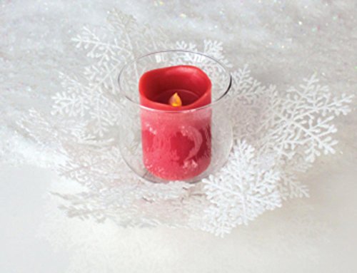 Winter Solace White Christmas Glass Pillar Candle Holder with Snowflake Ring