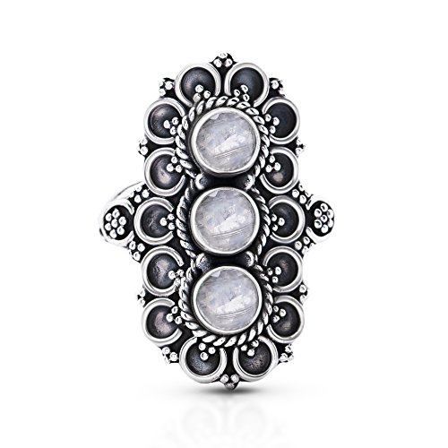 -. Title : Moonstone 3 Stones Vintage Gipsy Ring 925 Sterling Silver US Size 7 8 9