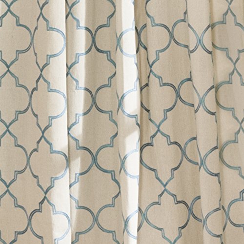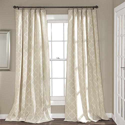 Chic and versatile, geo window panels feature all over trellis pattern on this lovely linen window panel. 3Rod pocket slides onto curtain rod for installation. Sold in pair. Part of geo collection.Feature