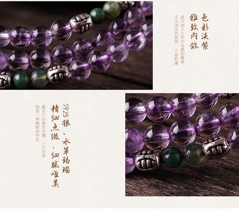 微色紫水晶缠绕手链 多层多圈手串 复古 文艺 饰品 礼物