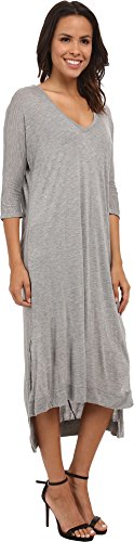 Wide scoop V-neckline. Deep V-keyhole detail on back. Three-quarter sleeves. Splits at sides. High-low midi length hemline. Unlined. Pullover design. 100% Micro Modal®. Dry clean only. Made in the U.S.A. and Imported.