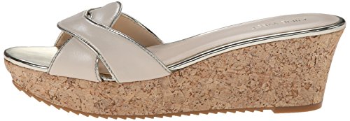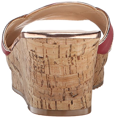Cork-covered platform wedge featuring curvy slide toe strap with piping trims