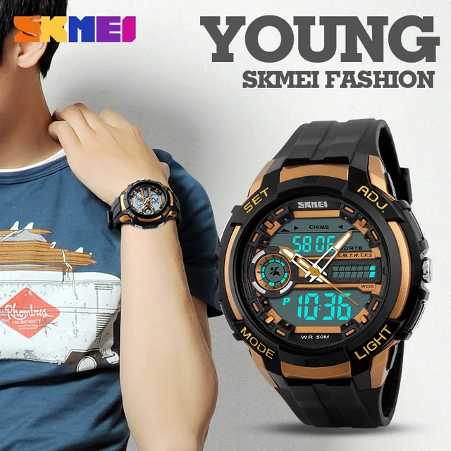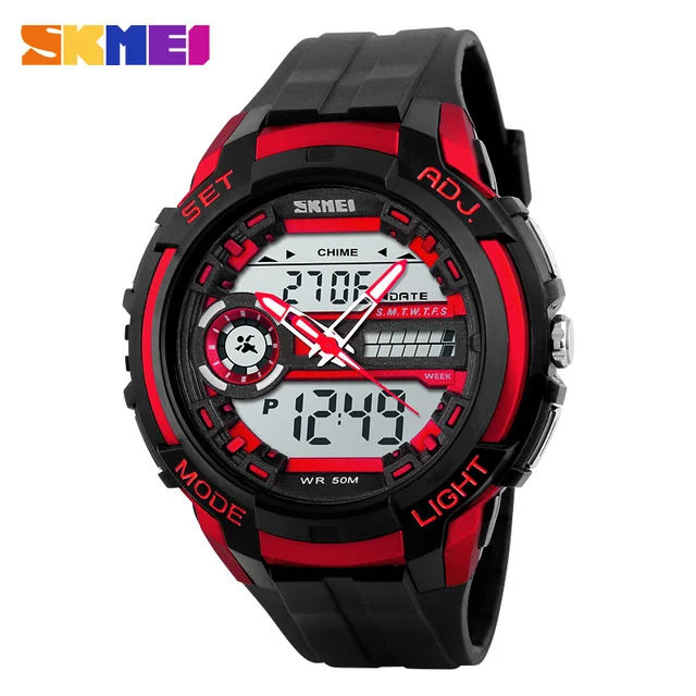 | [해외] SKMEI 새로운 브랜드 luxlury 패션 남성 스포츠 시계 다시 LED 50 메터 방수 시계 석영 디지털 듀얼 디스플레이 손목 |