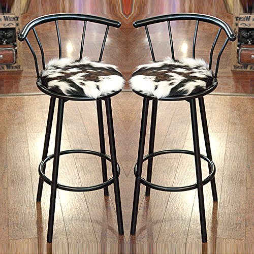 -. Binding : Misc. -. Brand : COMFYTACK -. Color : N/A -. Feature : Height 36 inches from base to top of back rest. / Seat: 13 inches. / Strong Powder coated Black color Metal Frame. / High Quality Genuine Cowhide Hair on Leather Padded Seat. -. Label : COMFYTACK -. Manufacturer : COMFYTACK -. ProductGroup : Sports -. ProductTypeName : SPORTING_GOODS -. Publisher : COMFYTACK -. Size : N/A -. Studio : COMFYTACK -. Title : SET OF 2 WESTERN GENUINE LEATHER COWHIDE HAIR ON BAR STOOL