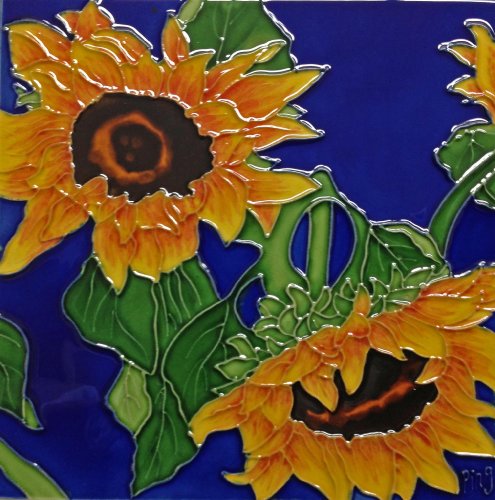 Continental Art Center BD-0500 8 by 8-Inch Two Sunflowers with Blue Background Ceramic Art Tile